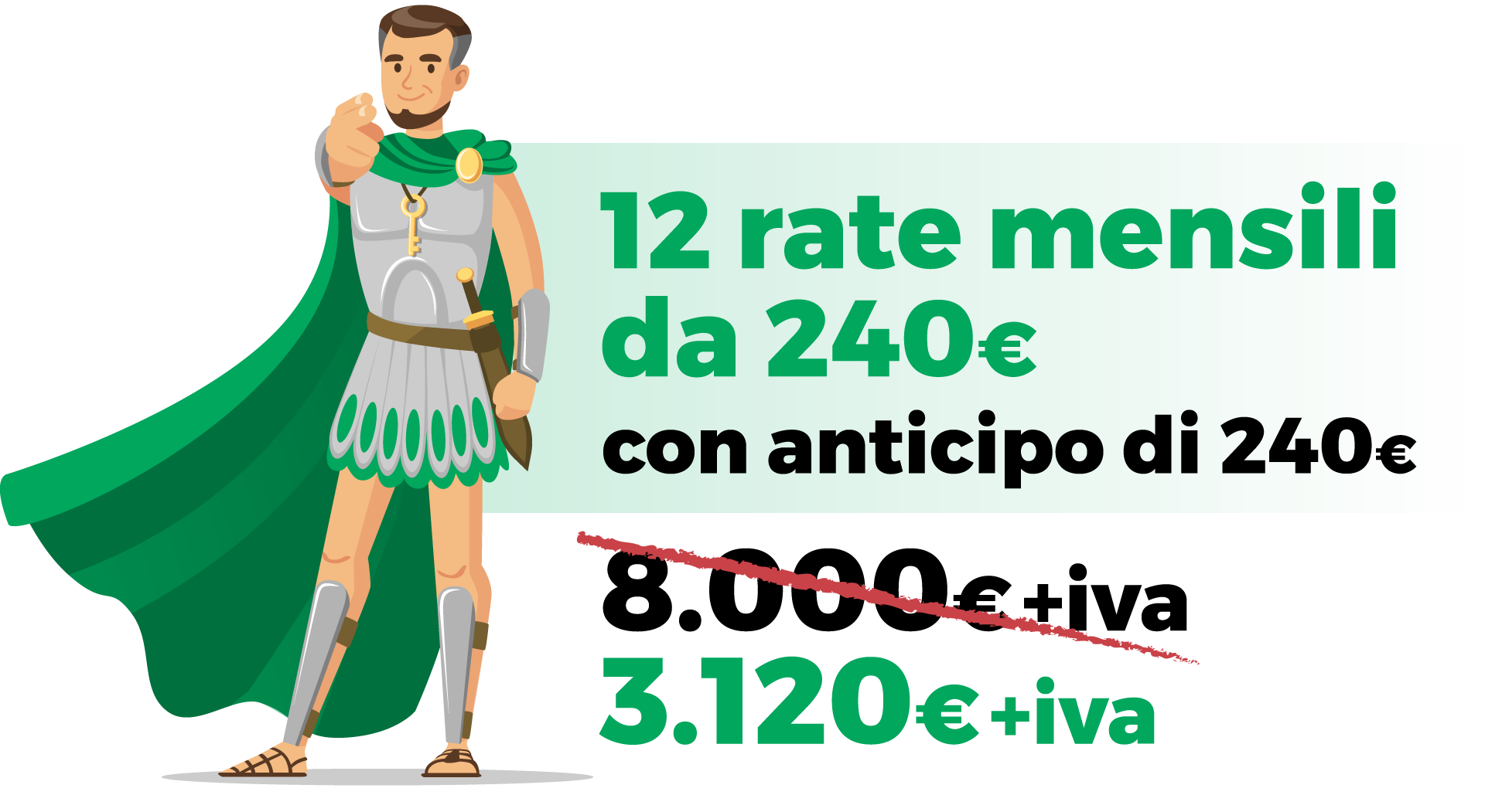 Il resto viene suddiviso in comode rate mensili per darti accesso al nostro programma più avanzato senza pesare tutto insieme sul bilancio.